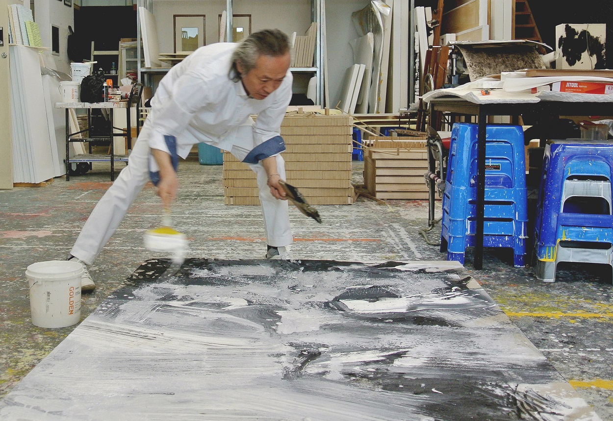 “모래 위에서 커다란 붓으로 퍼포먼스를 했었다. 붓을 든 나는 모래흙 위에 마찰과 흔적을 반복하며 시간의 영속(永續)을 은유했다. 그러다보면 반복의 선은 지워지고 없어지고 또 생겨난다. ‘무의식의 의식화’가 내 몸에서 발현되는 그것이 나의 독창적 작품세계이다.”