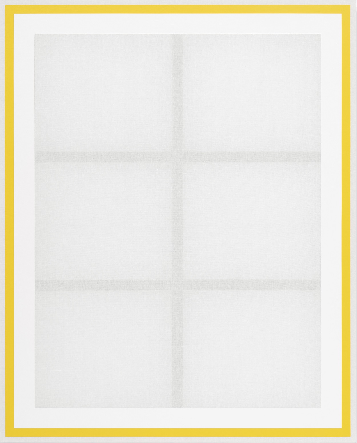 그림전체를 구성하고 성립시키는 면적으로서의 린넨은 거의 칠해지지 않은 물성자체의 자연성이다. 공기, 바람, 소리 그리고 다양한 성질의 입자가 통과하기도 하고 인력(引力)의 경로가 되는 원초적 통일성을 품고 있다. 여기에 작가는 화면을 수직수평으로 분할하고 구획 짓는다.